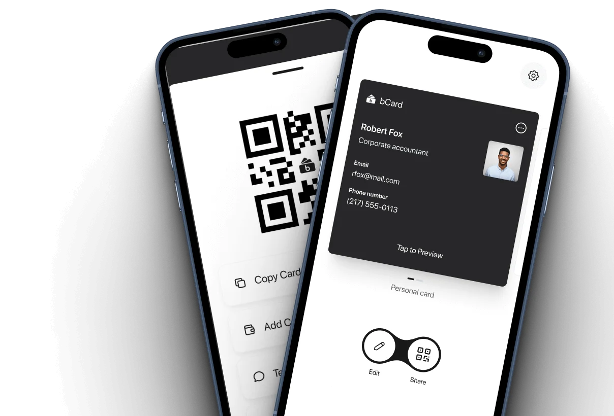 Share your card with others via QR code, links, or directly through messaging apps and email.